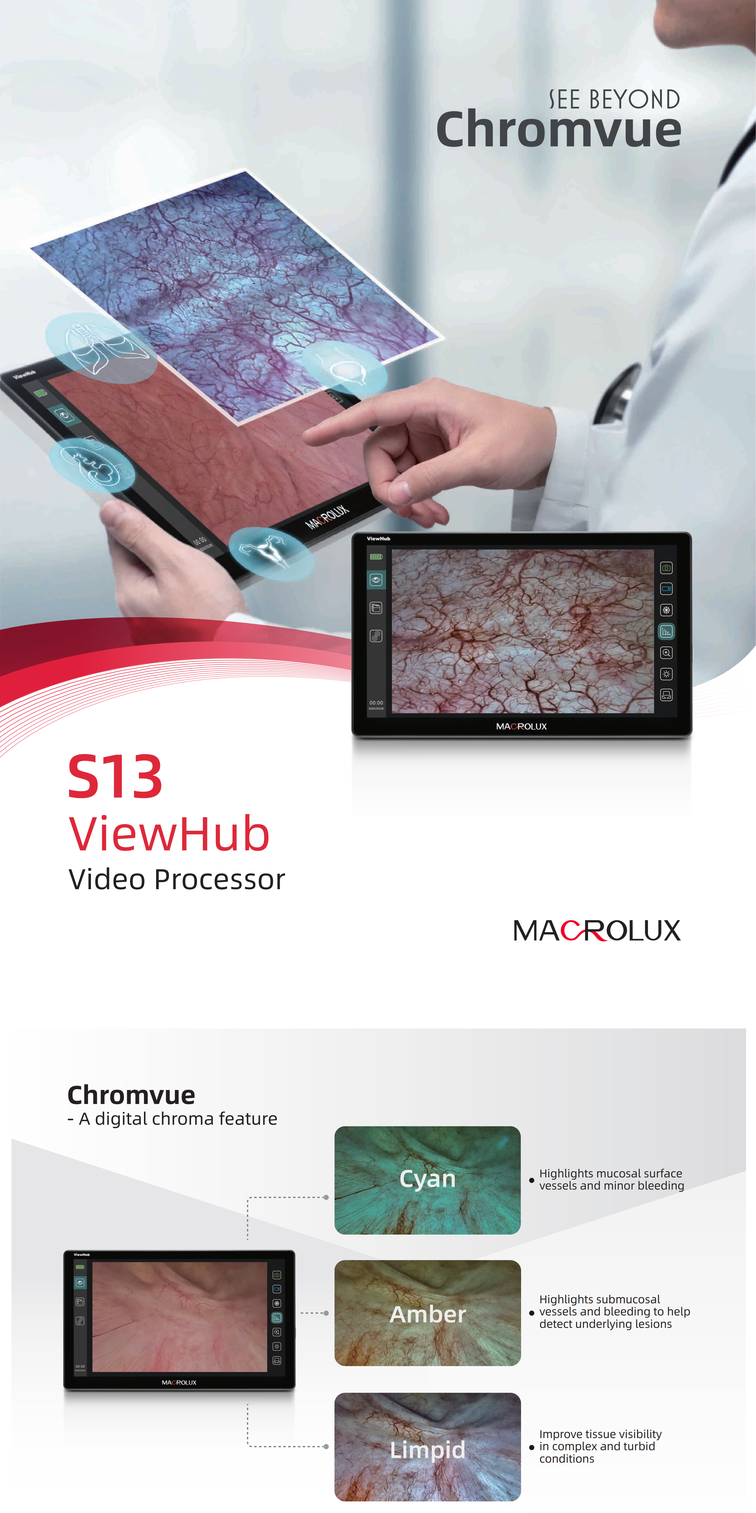 - Universal Platform: Compatible with all MacroLux single-use digital endoscopes.